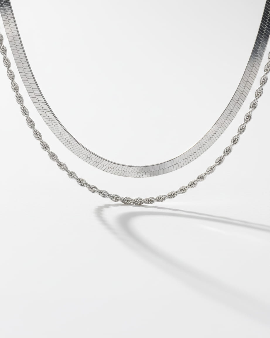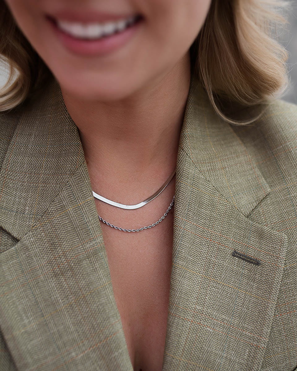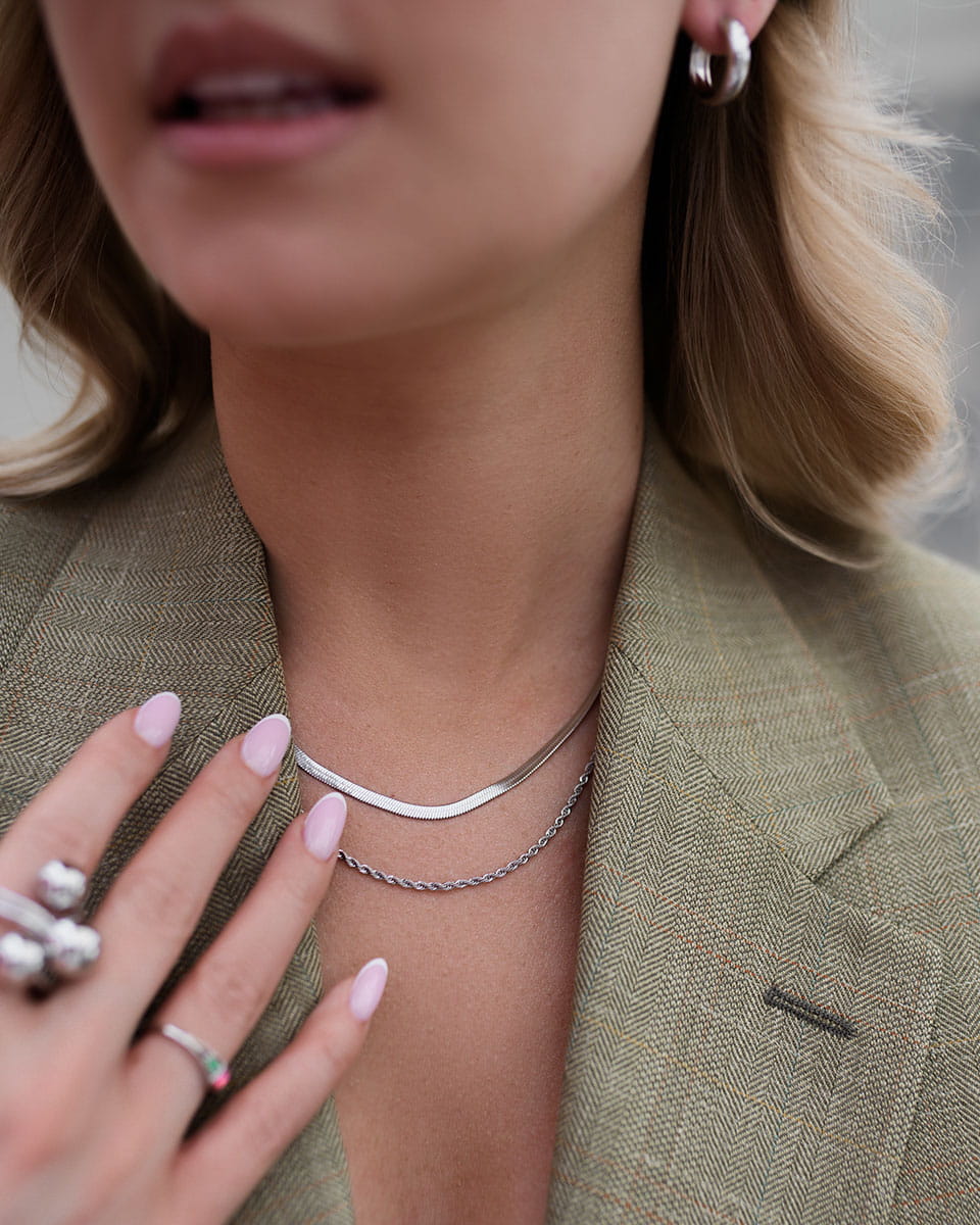 Podwójny srebrny naszyjnik ze stali chirurgicznej, który nie ciemnieje i dzięki warstwowej formie dodaje stylizacjom nowoczesnej lekkości.