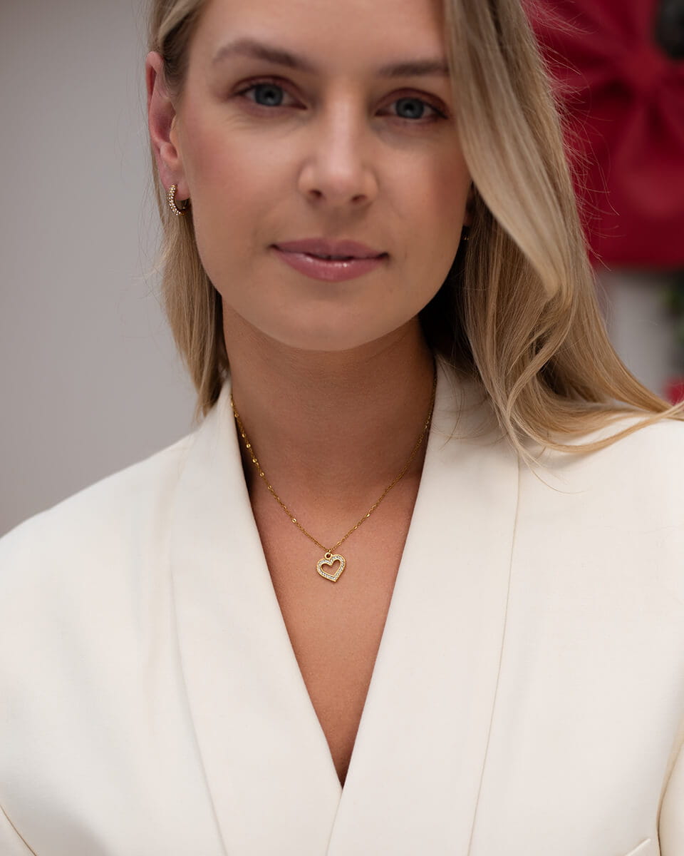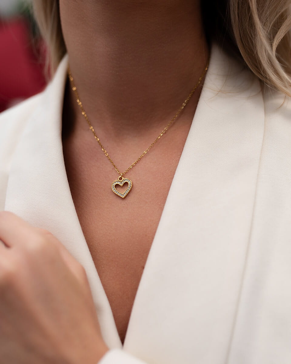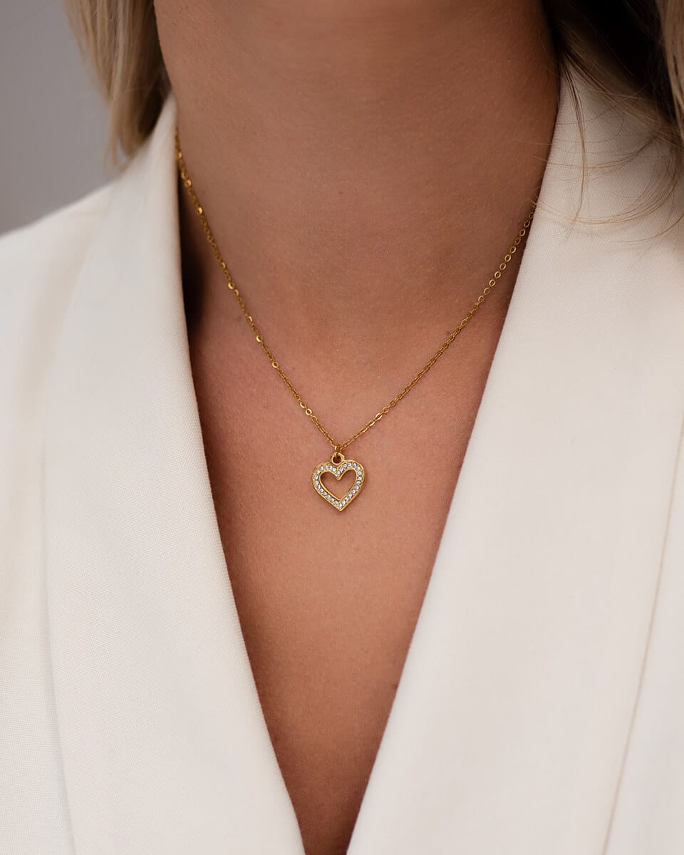 Złoty naszyjnik ze stali nierdzewnej, z zawieszką w kształcie serca z cyrkoniami.
